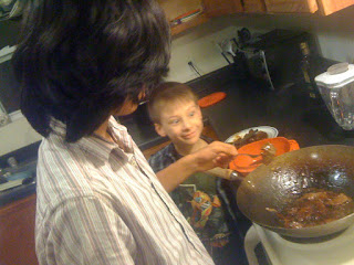 I taught all my children to cook. Family meals are now the responsibility of the older children in our family. Here is Joseph learning FAJITAS for the first time.
